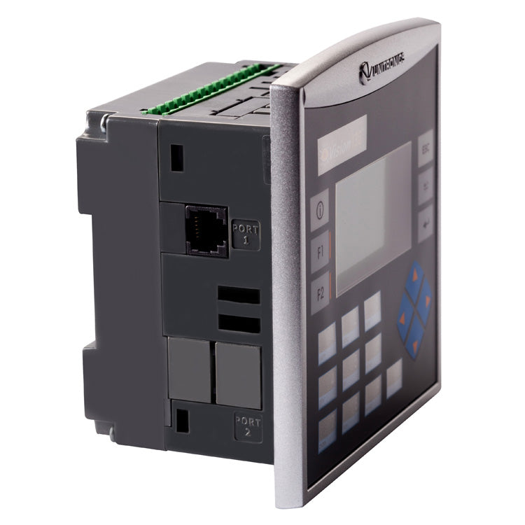 Napájanie 24VDC, 20 Digitálnych vstupov, 2 Analógové/Digitálne vstupy, 12 Reléových výstupov, RS232/485, plochý panel - čierny